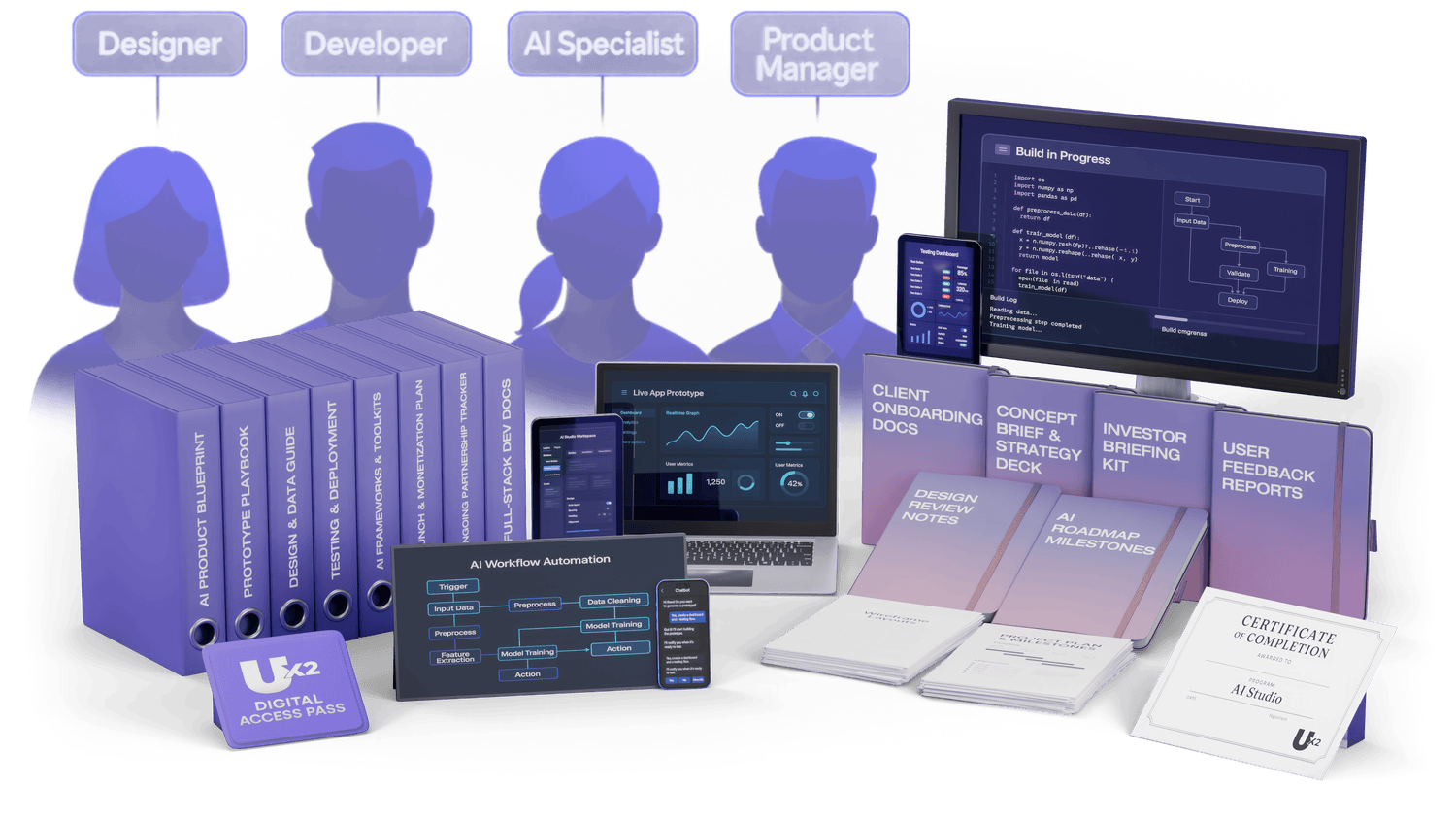 All the training to build your AI business yourself with our proven system — and walk away with a validated product ready to sell.
